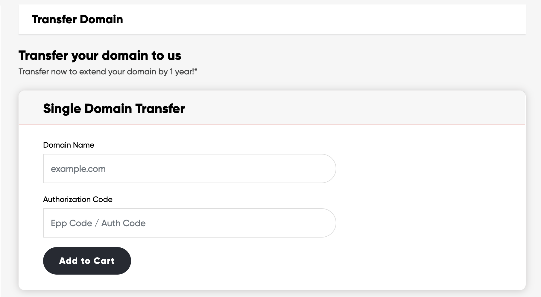 - 4. You possess a valid EPP/Auth code from your current registrar. If needed, you may need to get in touch with your registrar's support to obtain the code.