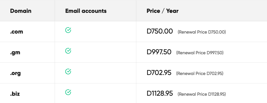 The cost of domains fluctuates based on the chosen TLD, such as .GM .COM, .BIZ, .ORG, and others, as well as any ongoing special promotions.